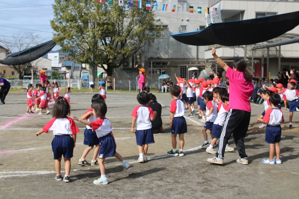 先日行った幼児部のうんどうかいで披露した年長児のチア・旗、年中児のバルーンから