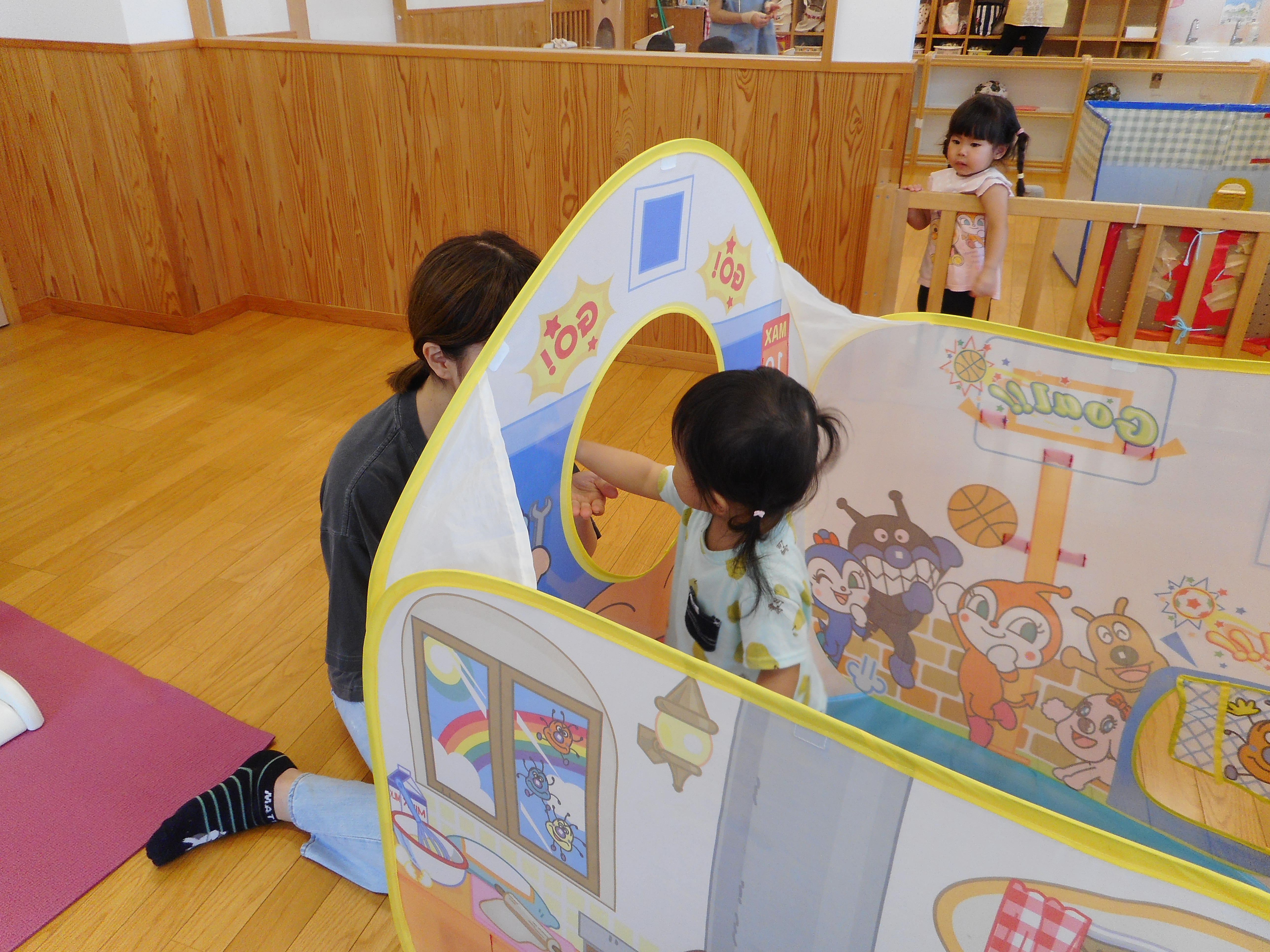 アンパンマンの家がお気に入り、お母さんに「あ~ん」とパンのごちそうをして