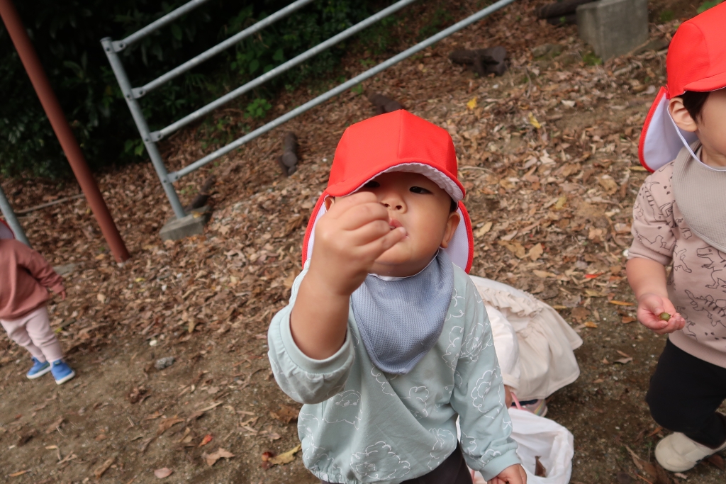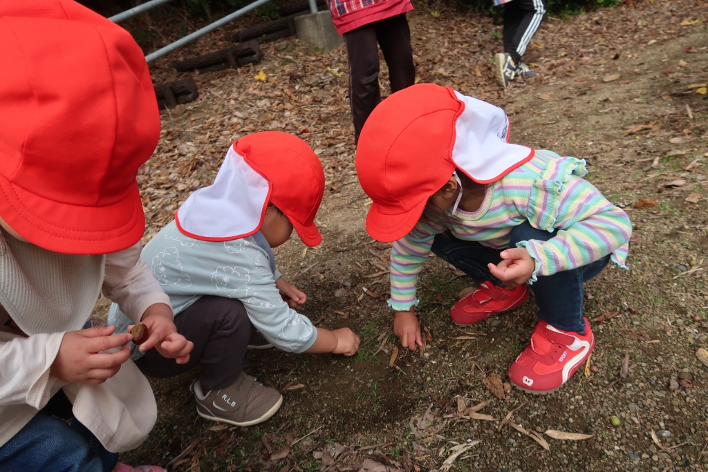 どんぐりのある場所に到着すると、子ども達は嬉しそうに駆け出し地面に落ちているどんぐりを嬉しそうにひろっていました😀