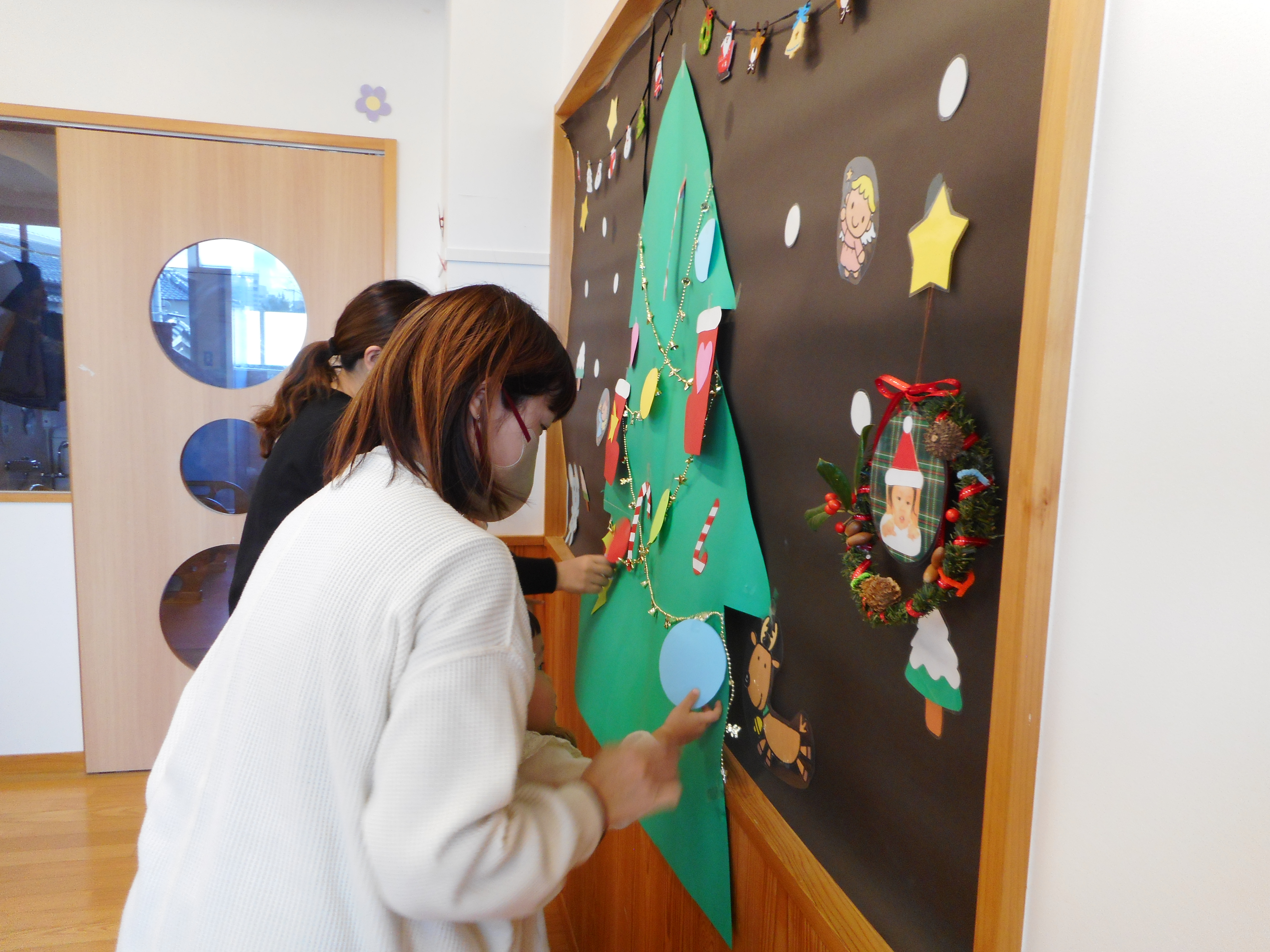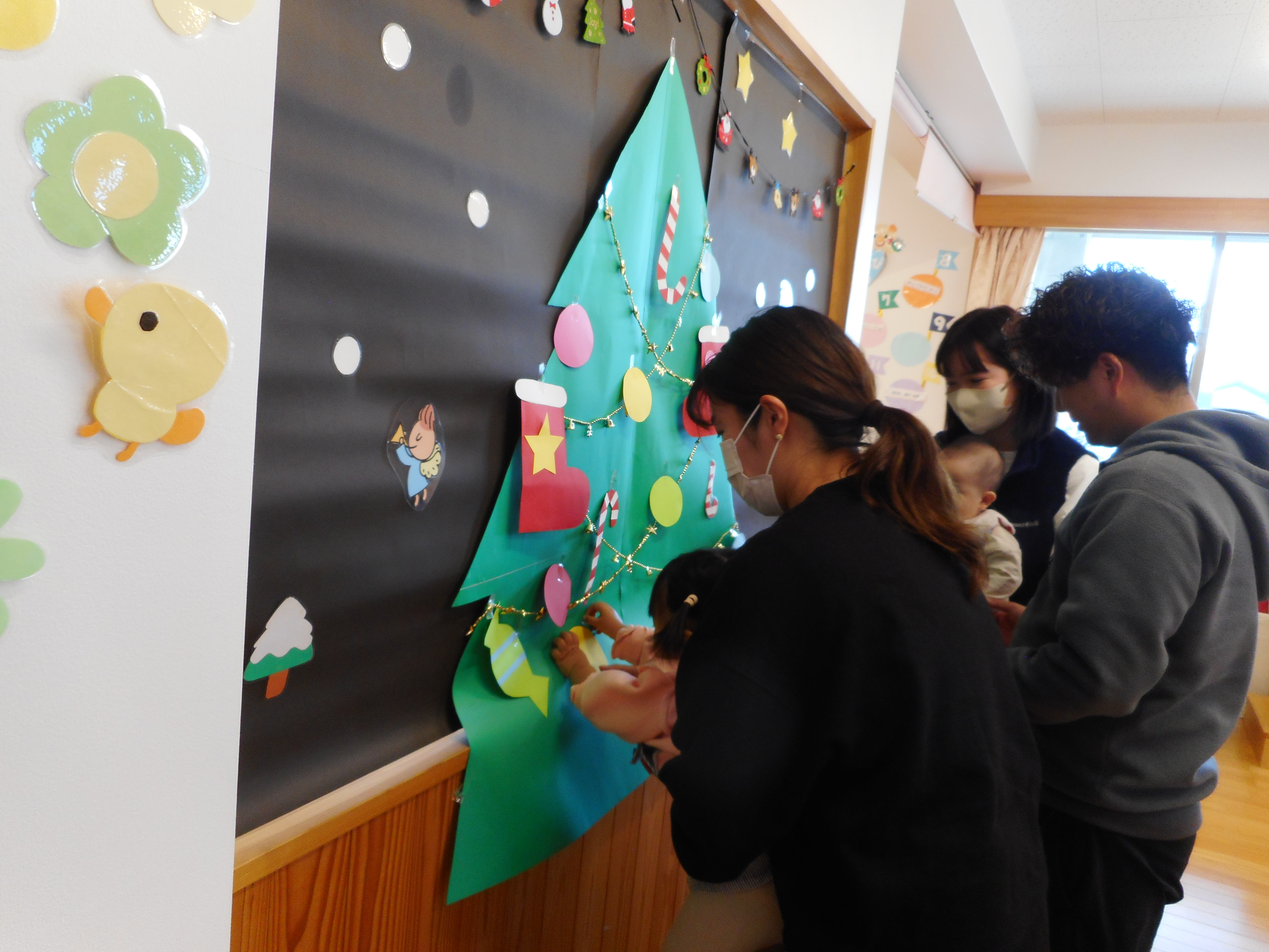 ツリーに飾りをつけて、クリスマス会がスタート。