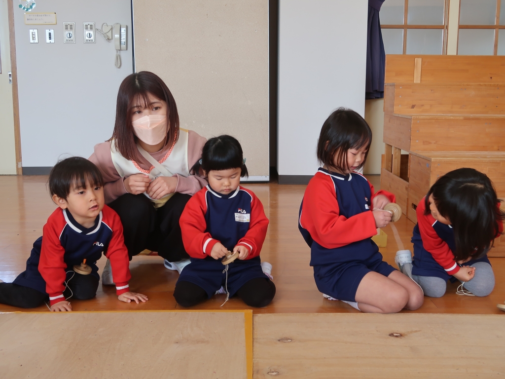 こま回し大会の後も、各クラスや延長保育の時間にこま回しを楽しんでいる子ども達です😊