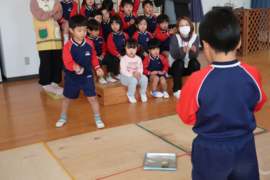こま回し大会ラストは年中・年長児でこま名人を選出し、こま勝負🔥💪