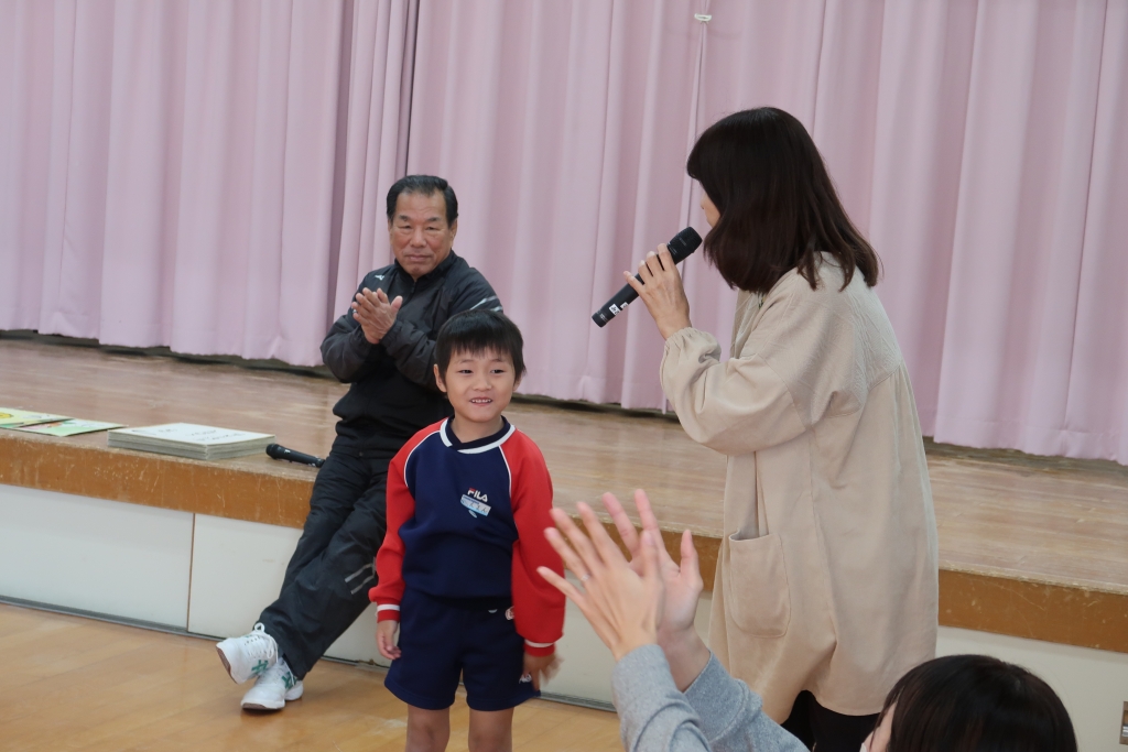 今回のかるた取り大会の最優秀賞は・・・キリン組の男の子🦒